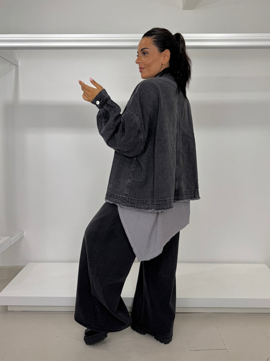 Giacca jeans tasca strass