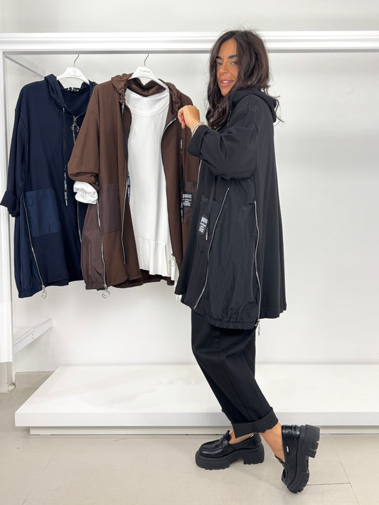 Felpa garzata due tessuti dettaglio cerniera