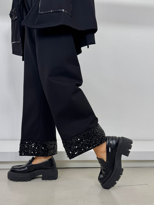 DOLCEMENTE CURVY pantalone motivo fondo paillettes