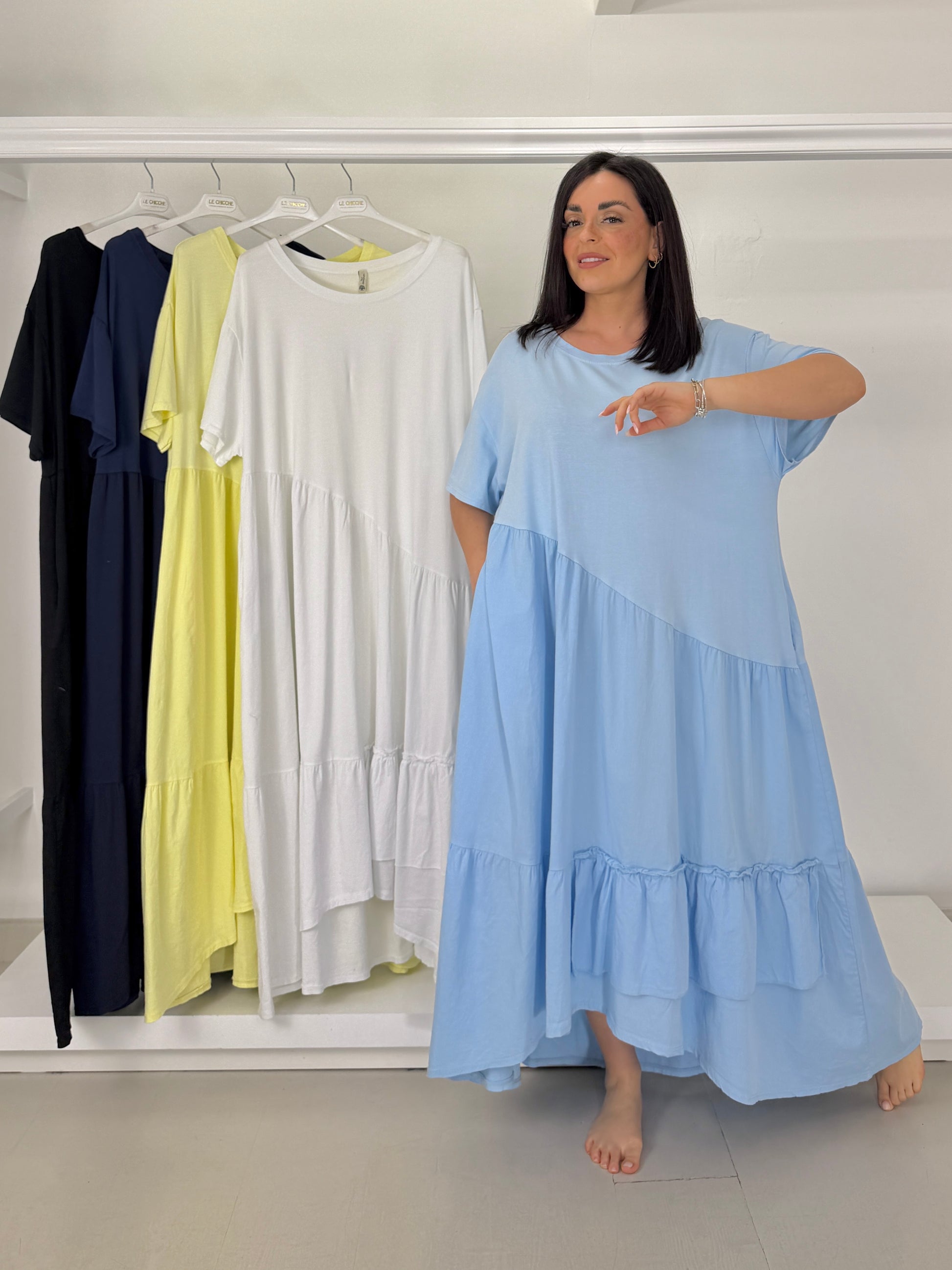 Abito due tessuti con balze - versione mezza manica