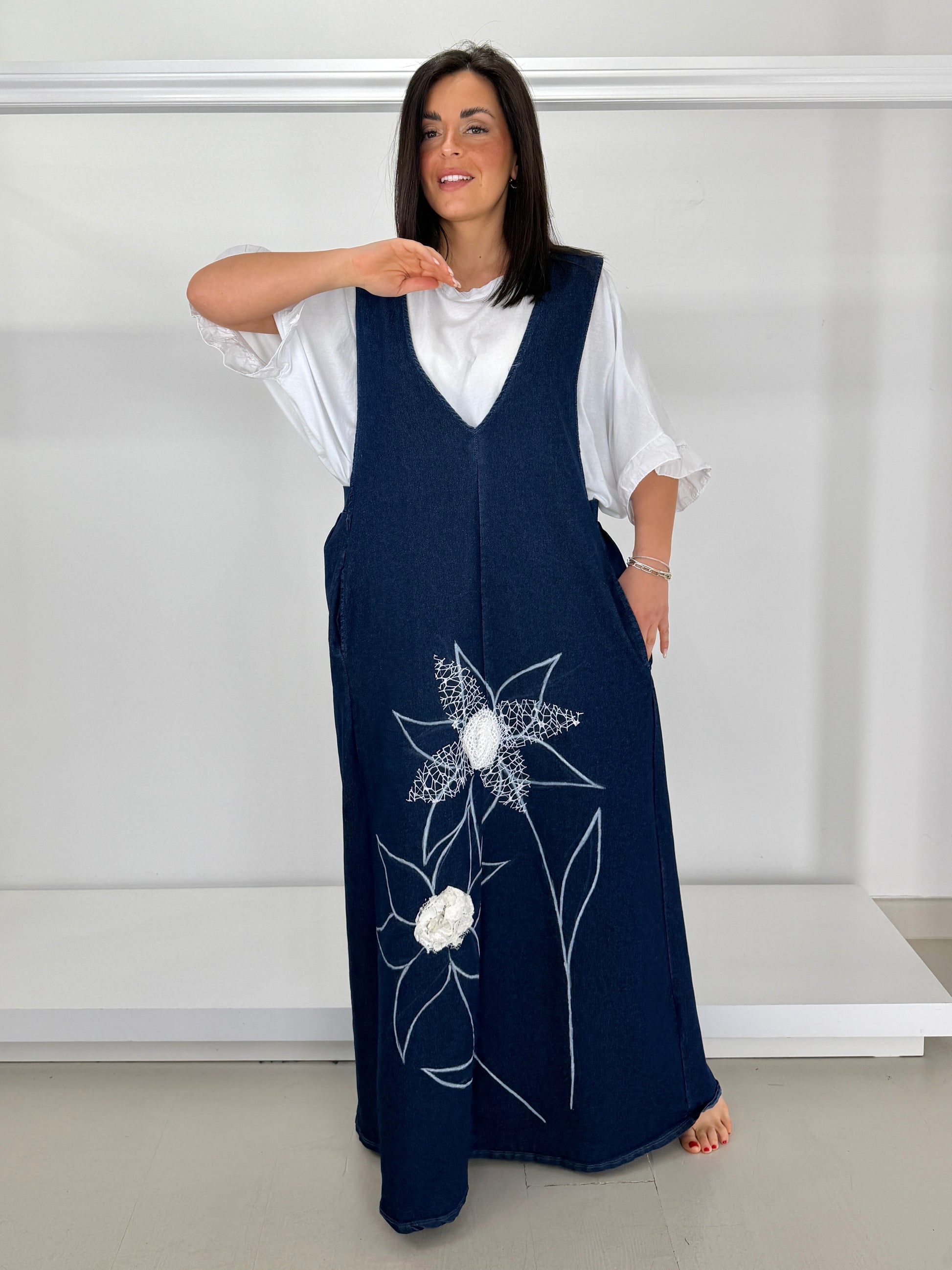 Taglia unica: sotto seno 120 cm (sul seno è aperto), fianchi 150 cm, lunghezza 143 cm