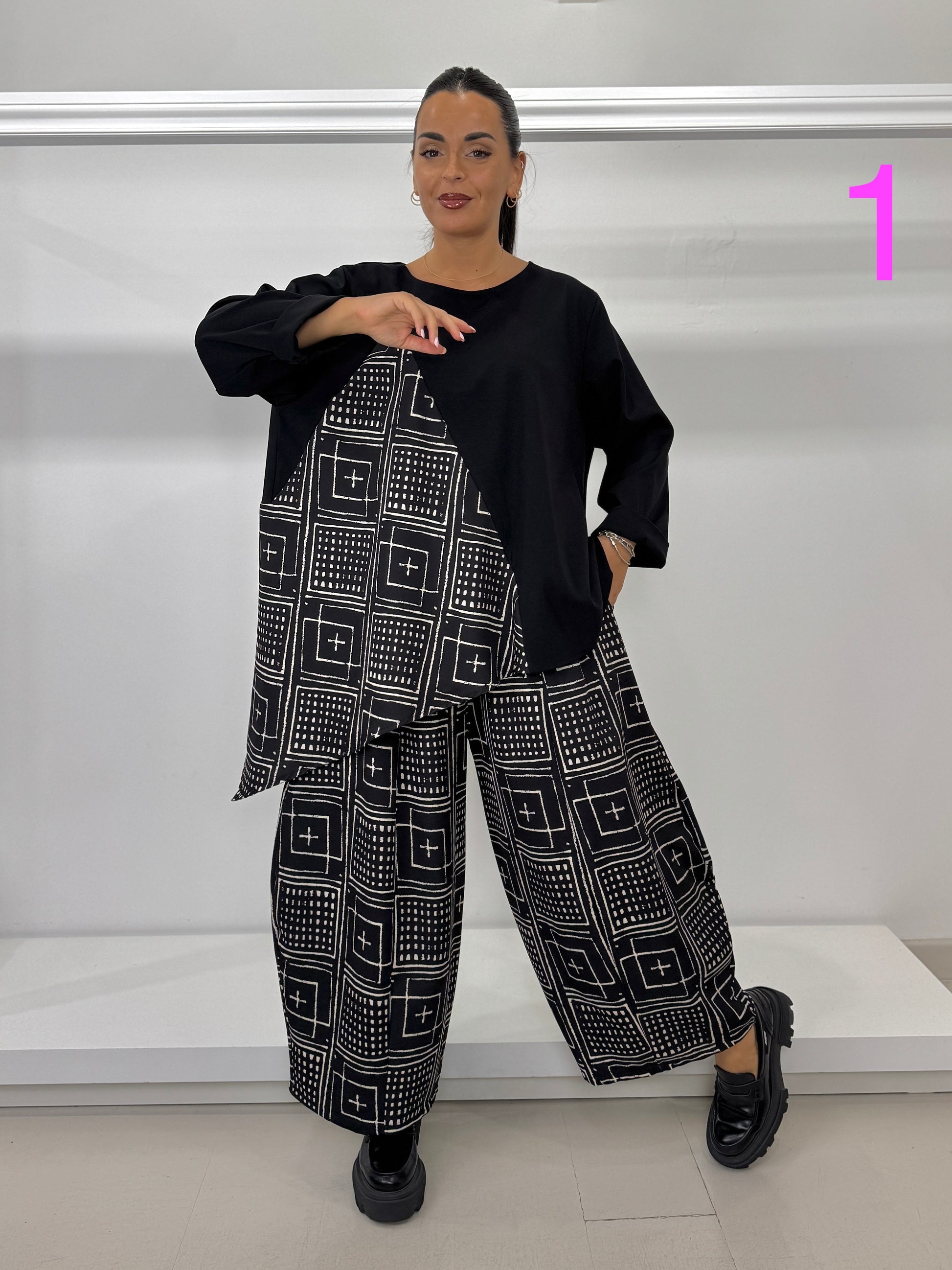 Il suo pantalone si trova con dicitura: Pantalone gamba larga ovetto fantasia