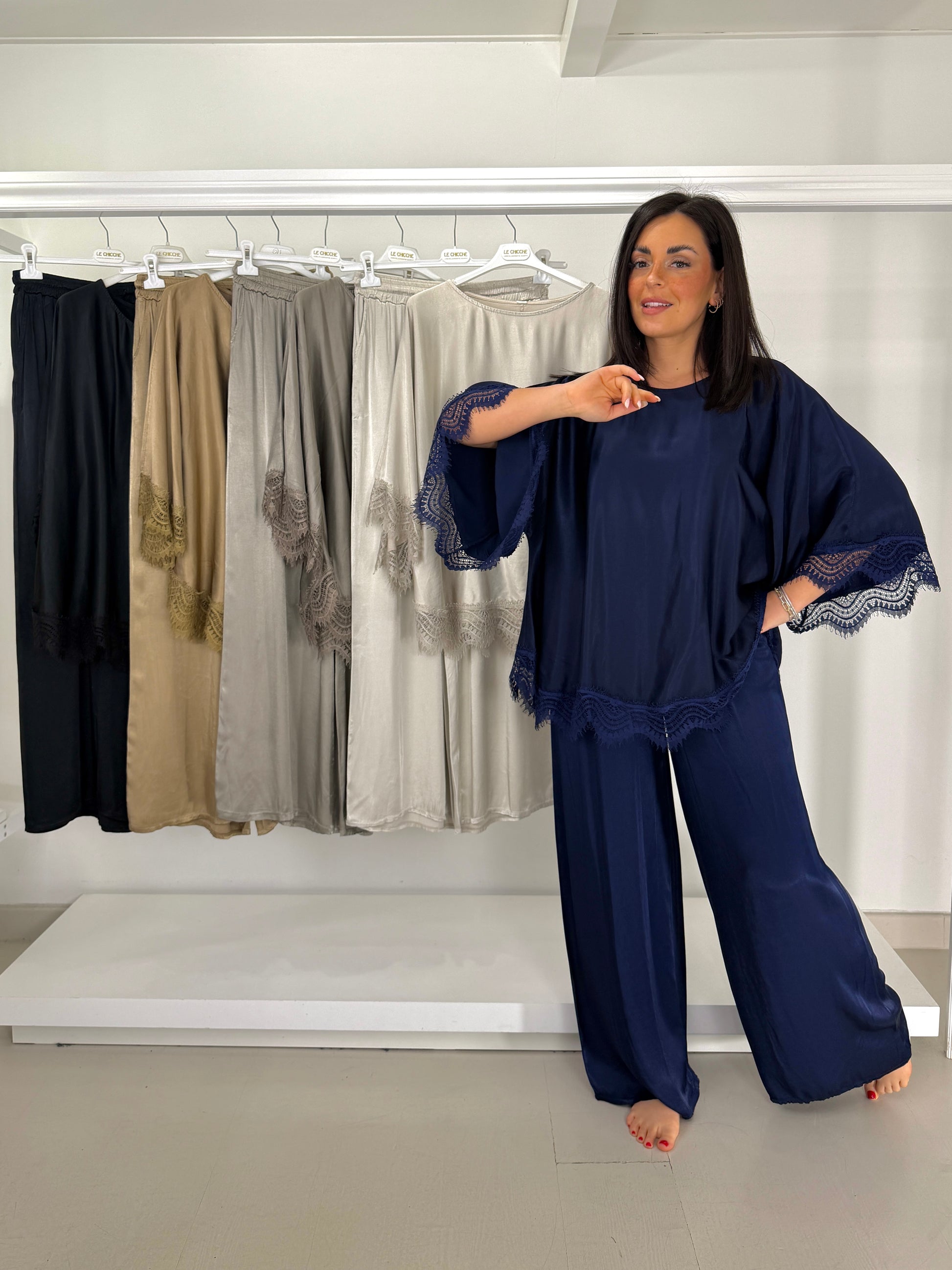 Casacca raso in misto seta inserto pizzo