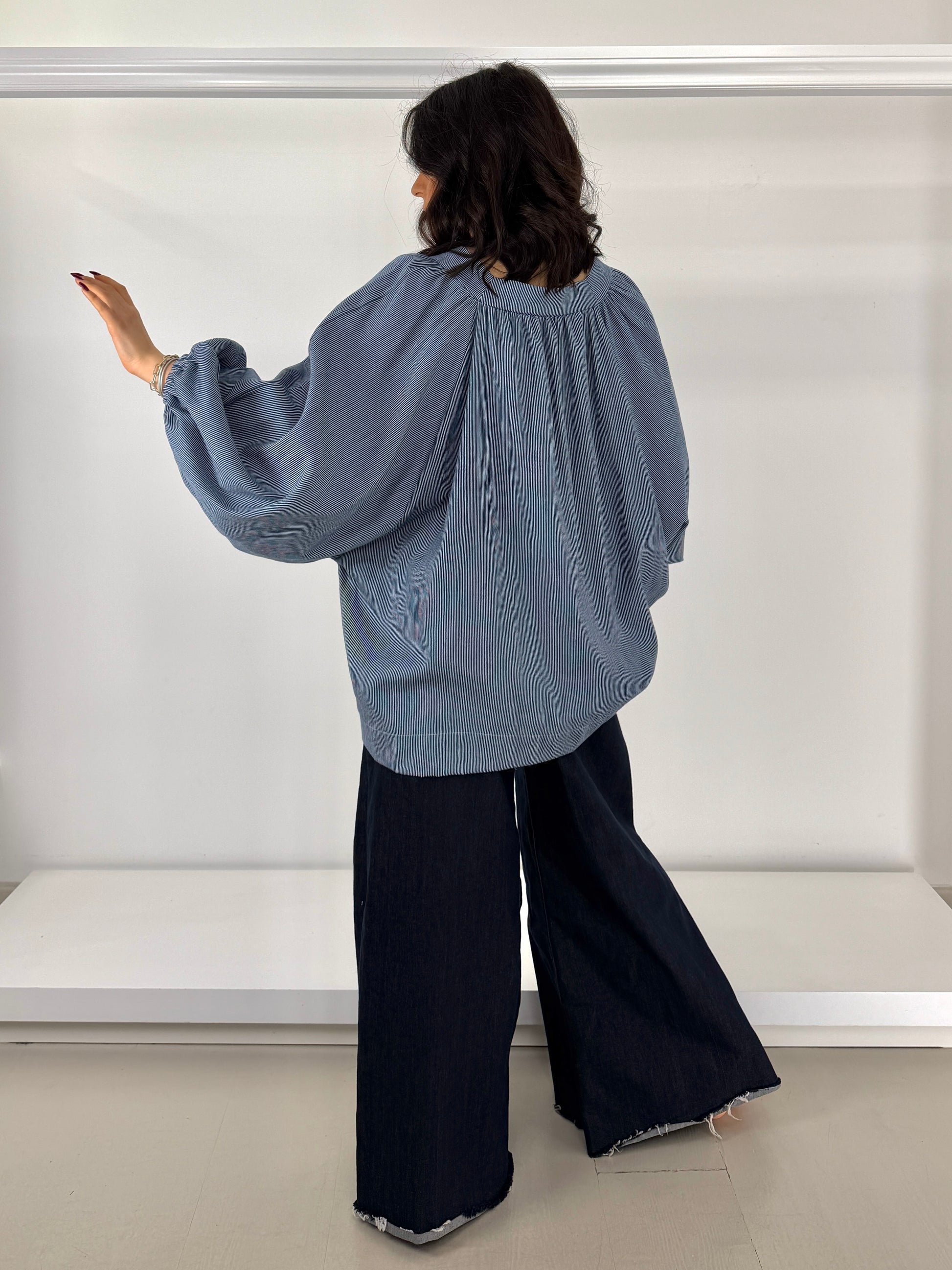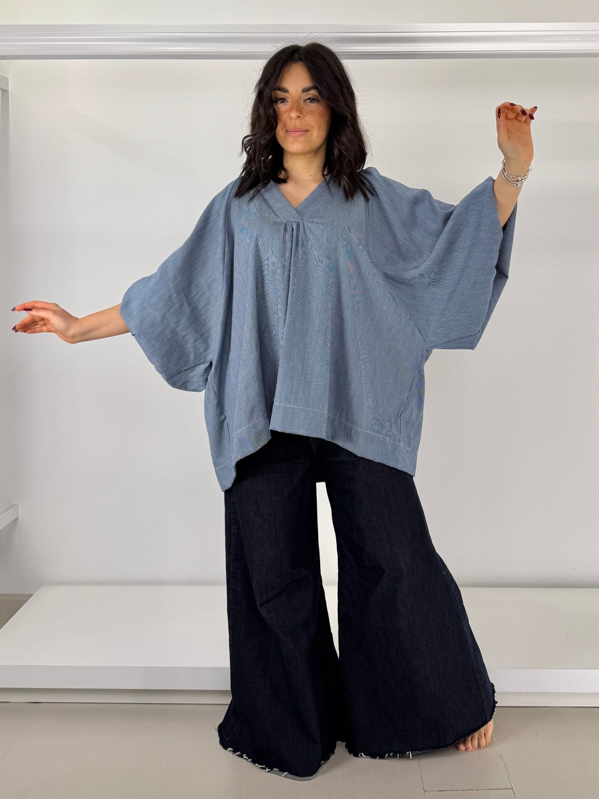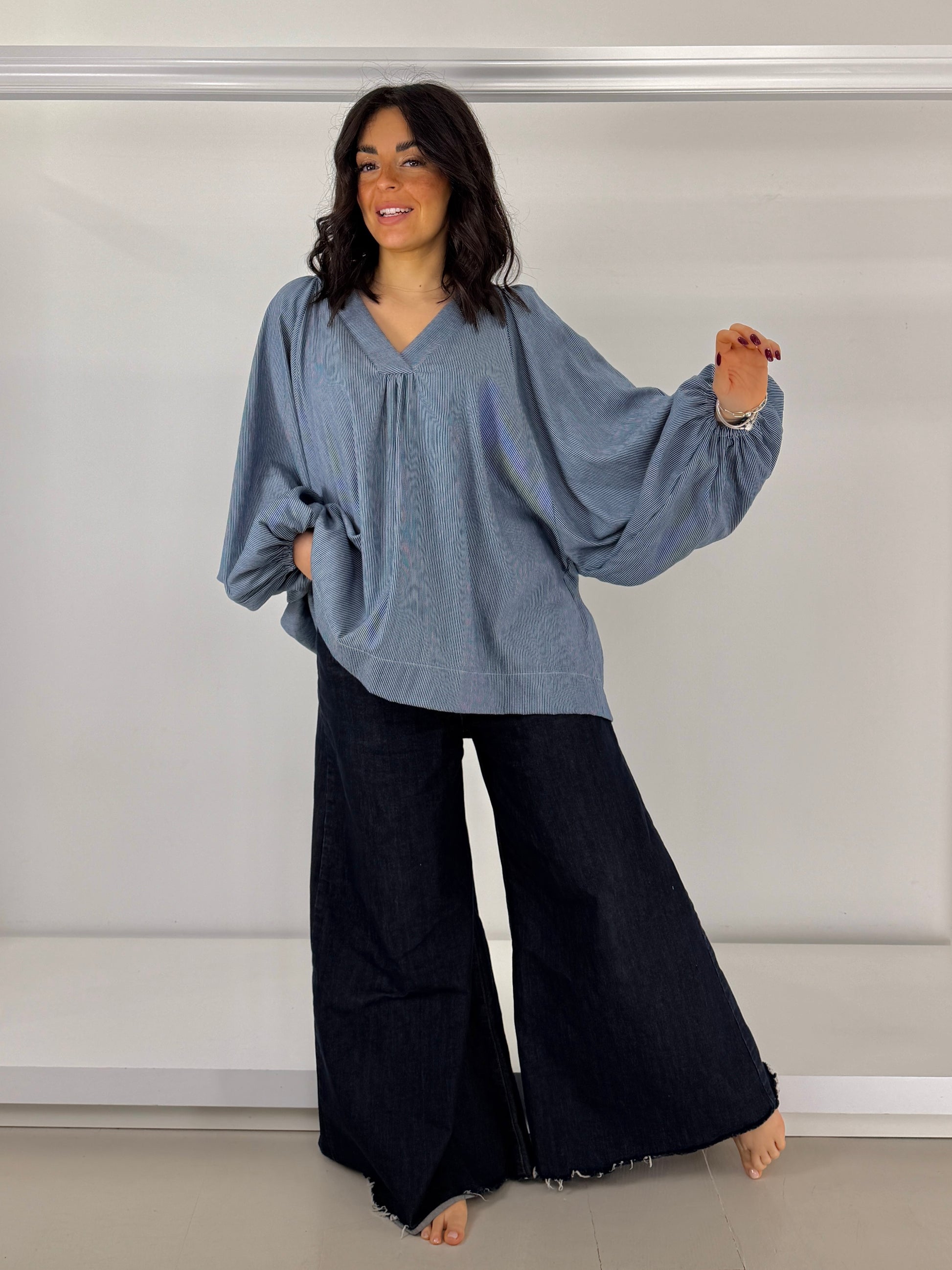 Può essere indossata manica lunga o a sbuffo, ha un elastico sottile e comodo
