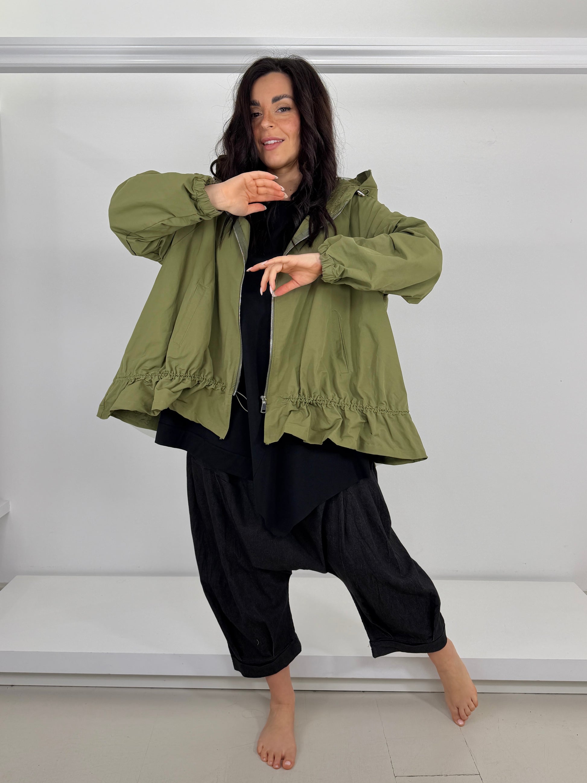 Coulisse sul fianco che permette di arricciare e dare motivo / stringere sia avanti sia dietro