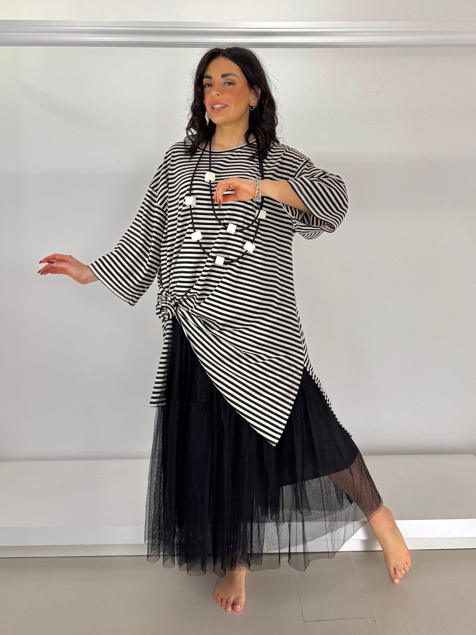 Maglia a righe lunga svasata
