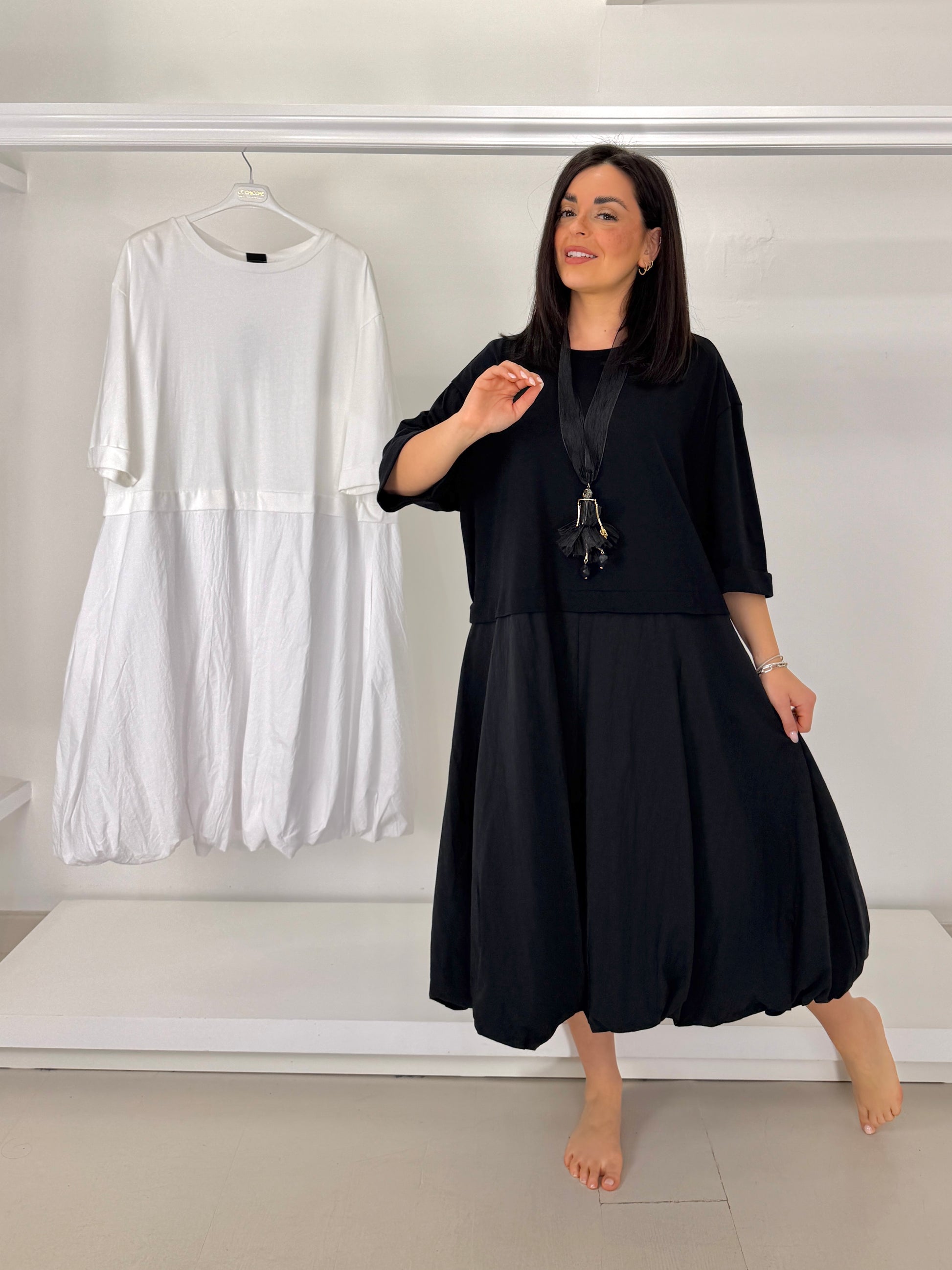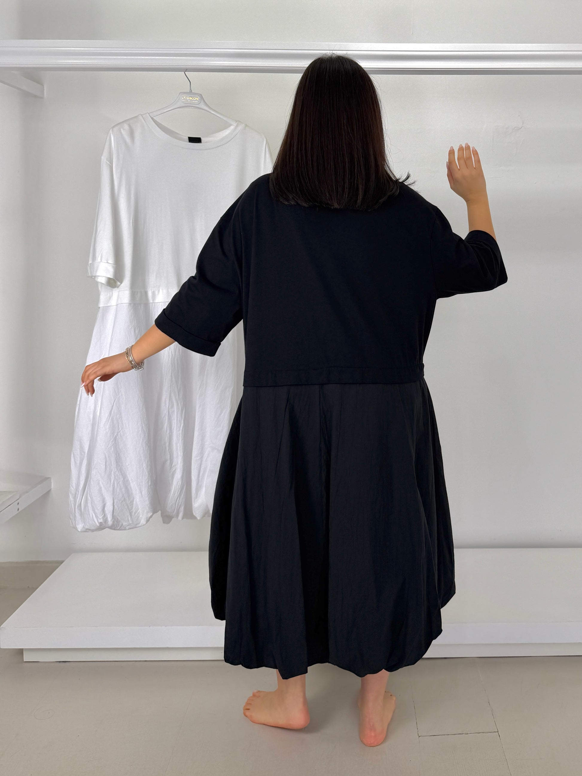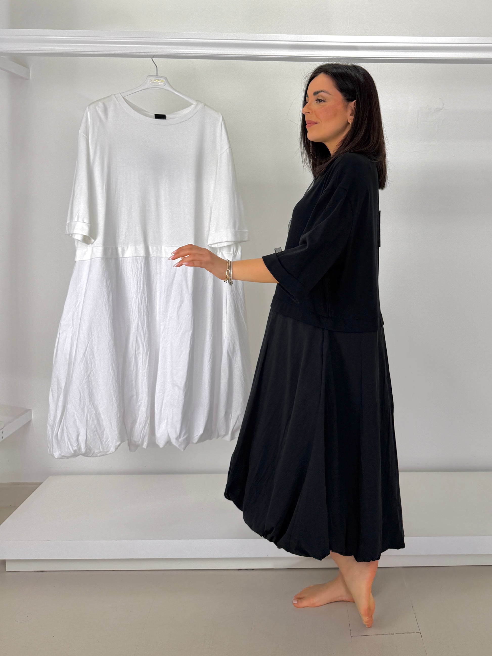 MAT abito due tessuti fondo arricciato