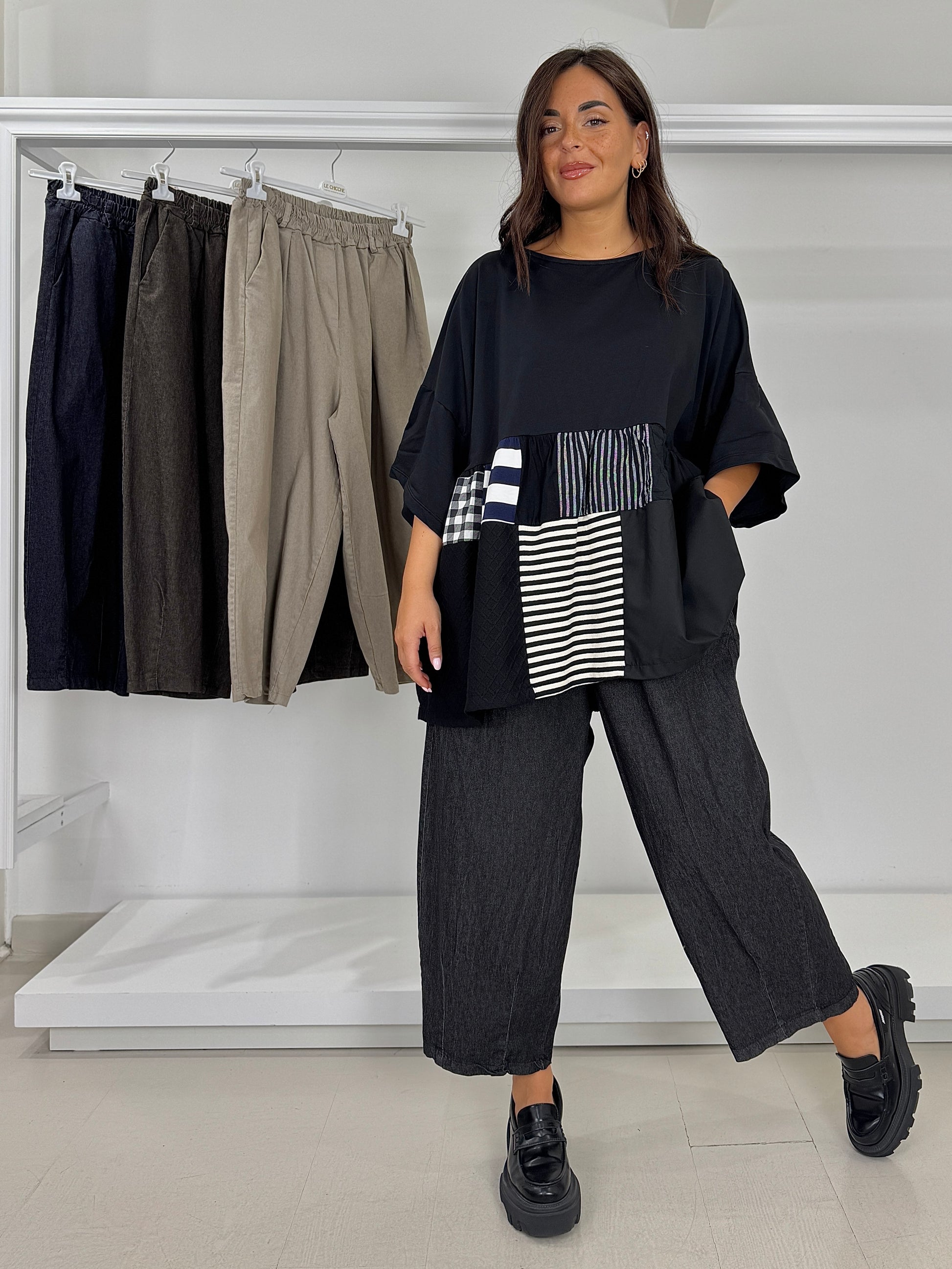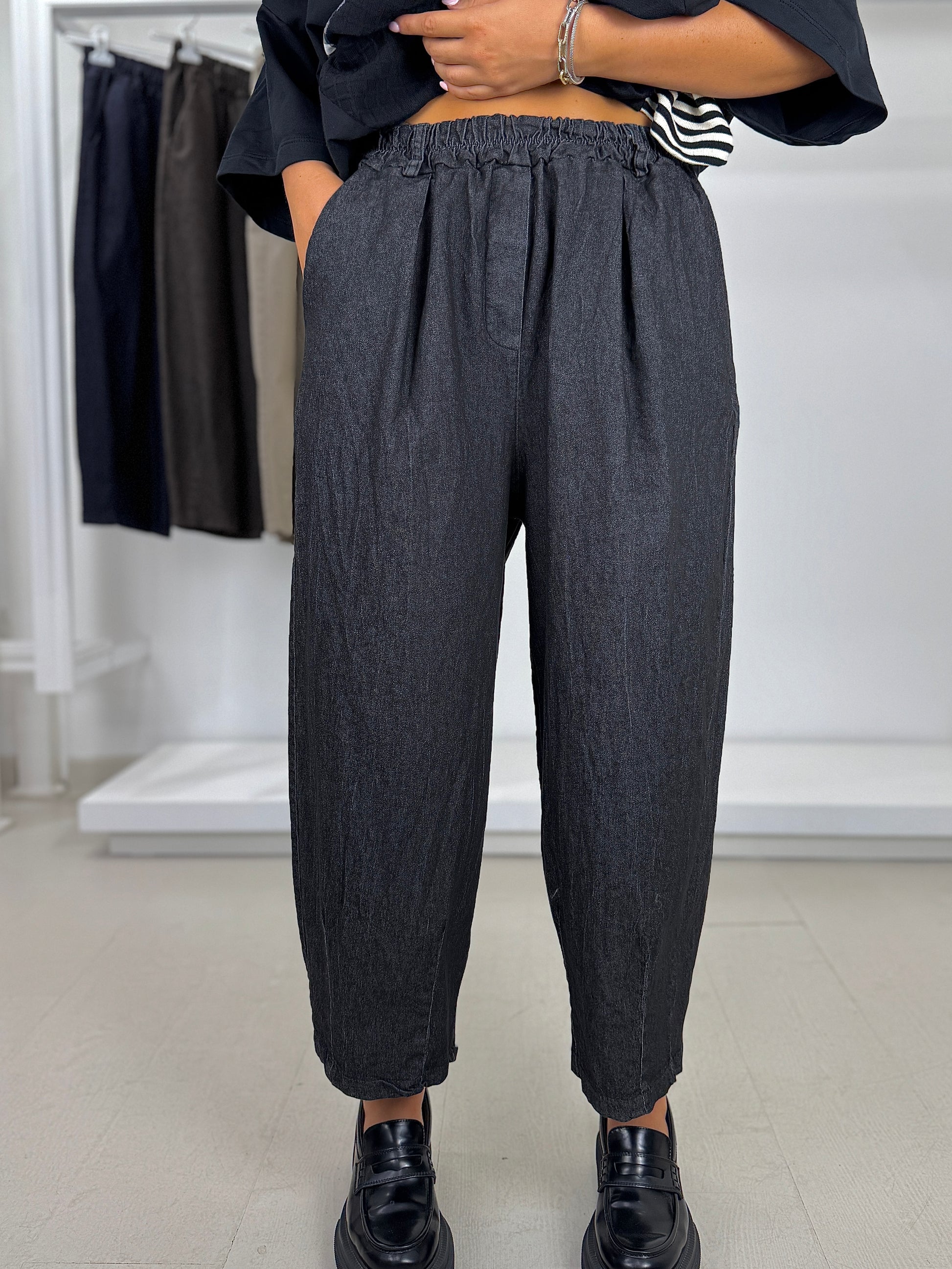 Pantalone ovetto effetto jeans elasticizzato